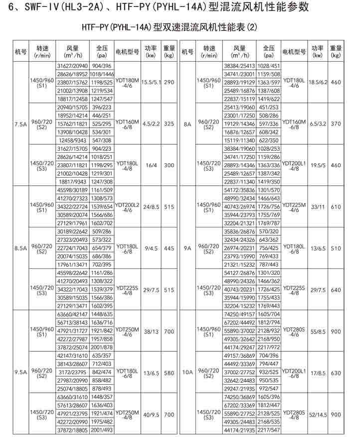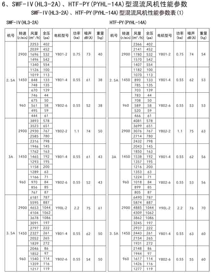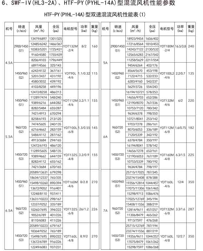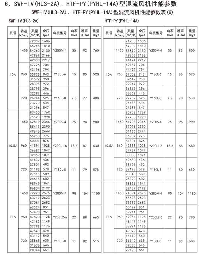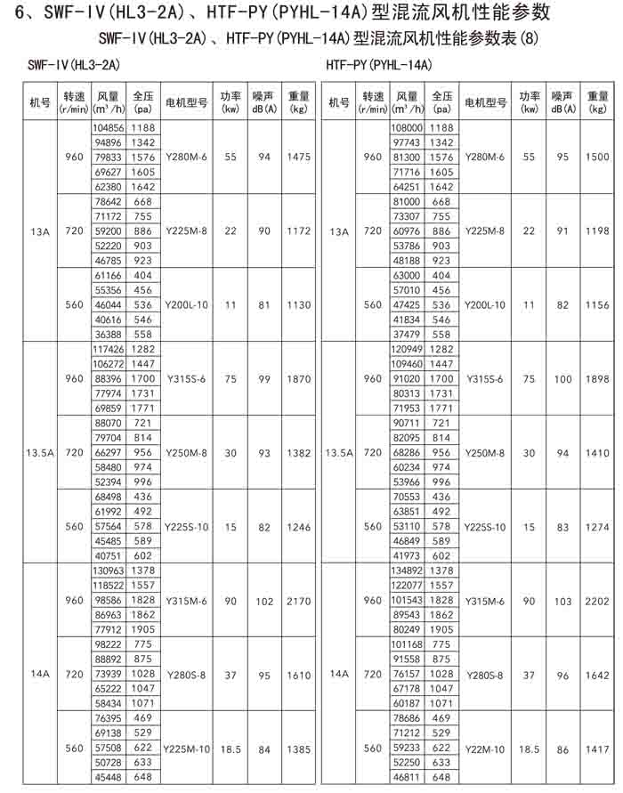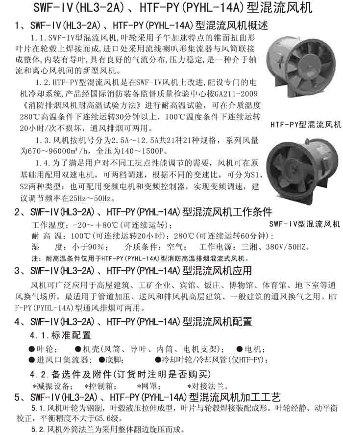 三、SWF-IV(HL3-2A)、HTF-PY(PYHL-14A)系列节能混流风机