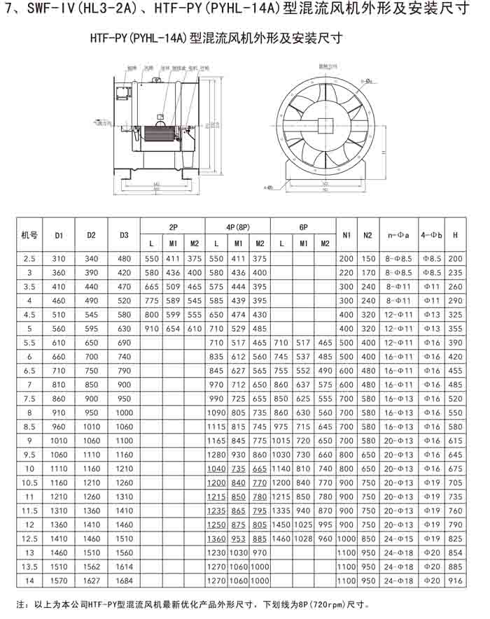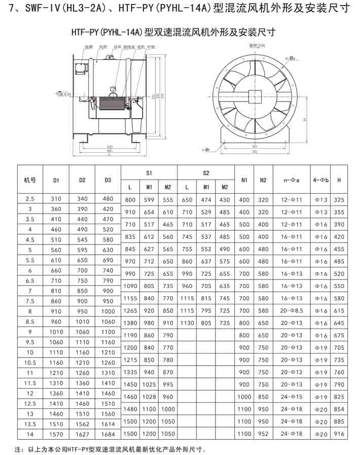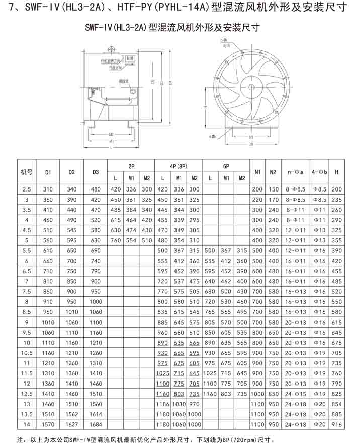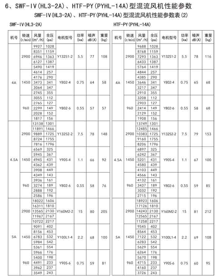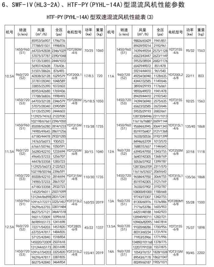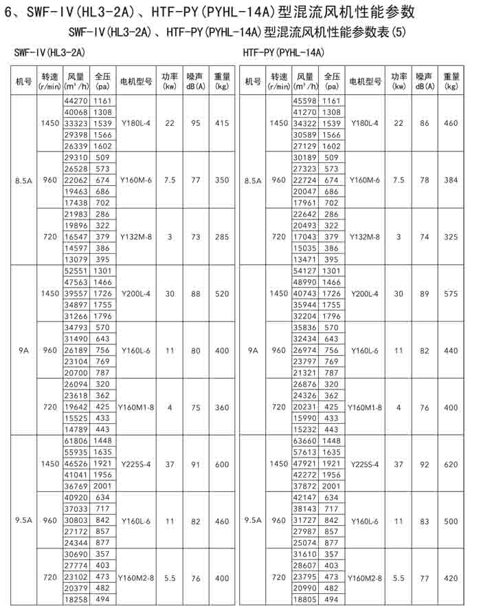 三、SWF-IV(HL3-2A)、HTF-PY(PYHL-14A)系列节能混流风机