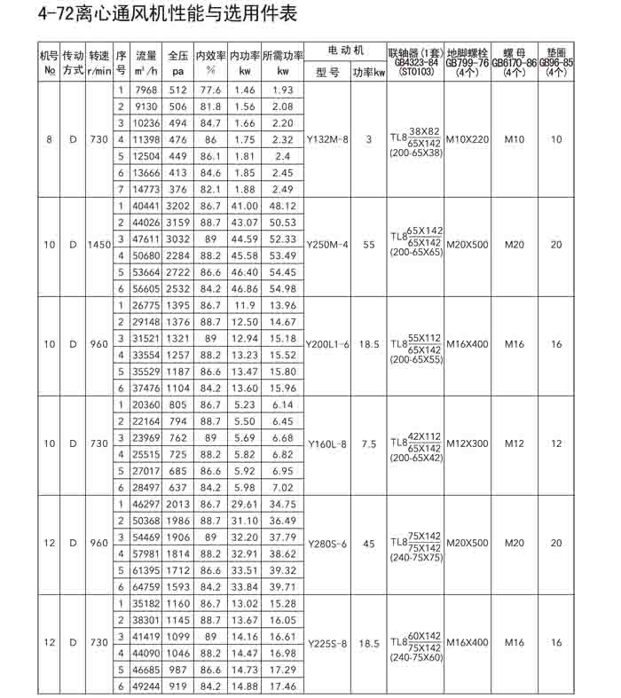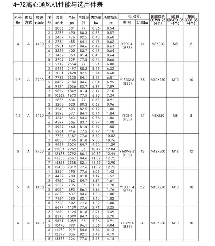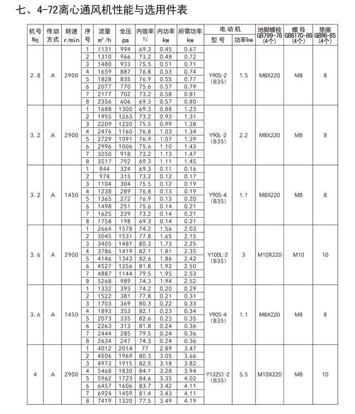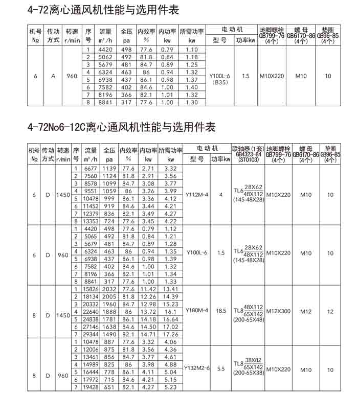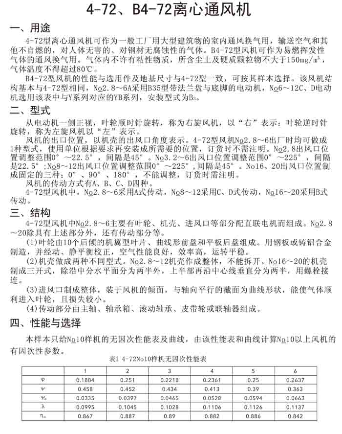 一、4-72(B4-72)、4-79(4-2*79)离心风机